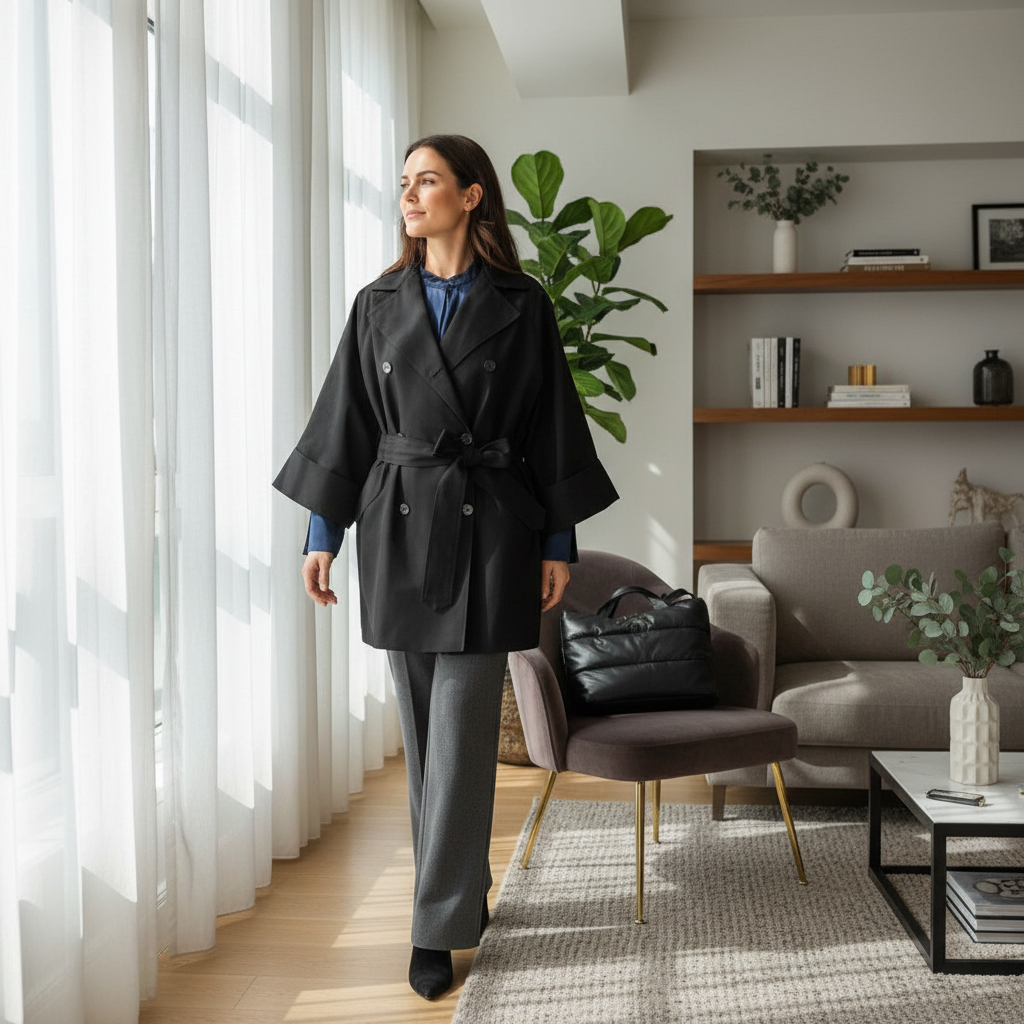 - Силуэт и посадка: relaxed‑fit — свободный, чуть удлинённый силуэт для комфортной посадки и многослойности. Спинка немного длиннее, что добавляет аккуратной формы при носке.