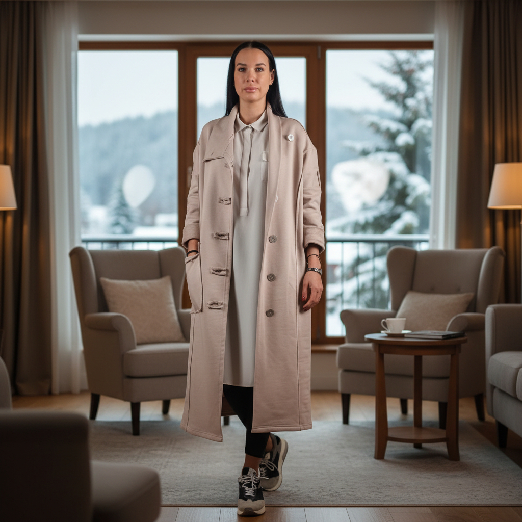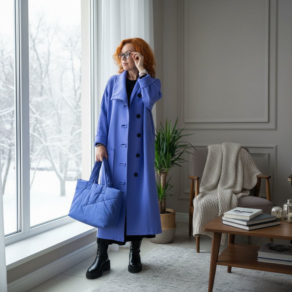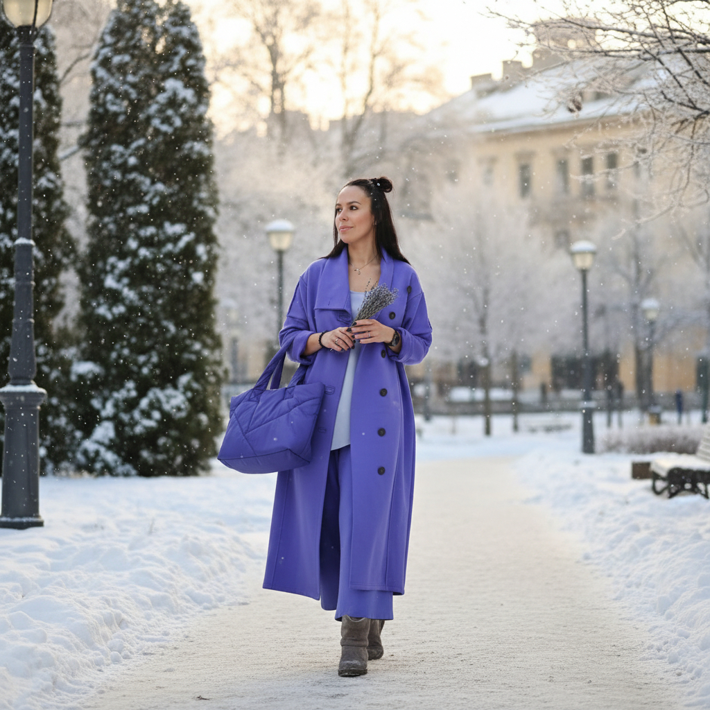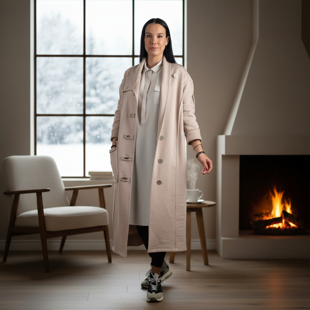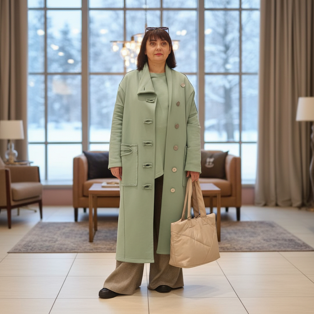 - Воротник: высокий, мягко оформленный, можно носить раскрытым или приподнять для дополнительного тепла.