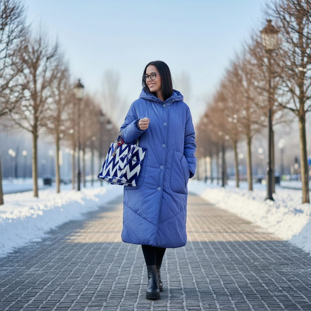 - Ткань и отделка: матовый верх, плотная стёжка с тонким утеплителем — тёпло, но не тяжело, аккуратная фурнитура без лишних декоров.