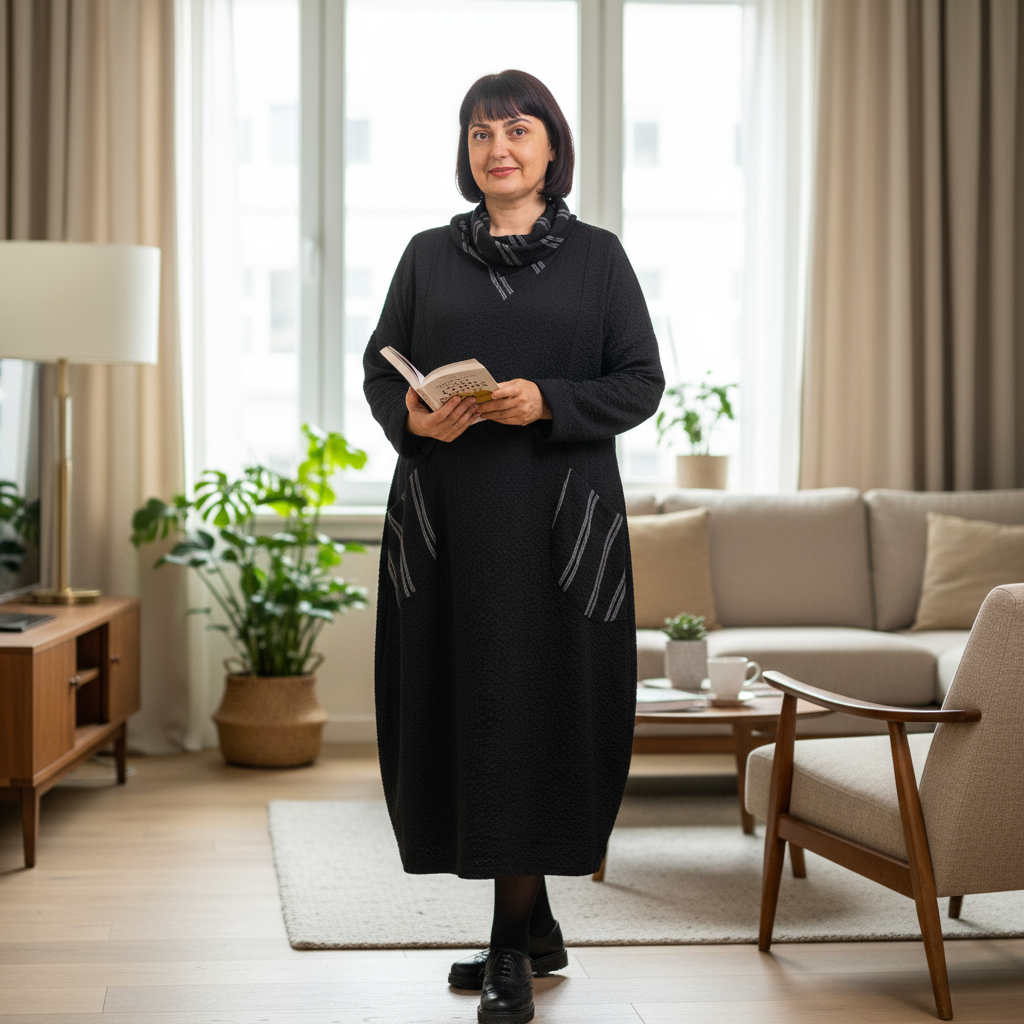 Состав: 49% вискоза, 25% шерсть, 25% полиэстер, 1% эластан.