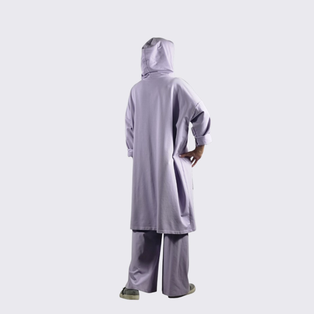 - Этот кардиган сочетает в себе повседневный уют и аккуратную структуру: удлинённый силуэт закрывает бедра, капюшон добавляет неформальный штрих, а крупный накладной карман — практичность. Модель с опущенной линией плеч и свободным рукавом создаёт лёгкую многослойность и хорошо смотрится поверх лонгслива или тонкого топа. Чистая минималистичная линия делает кардиган универсальным для города и дома — он легко комбинируется с брюками, платьями и юбками.