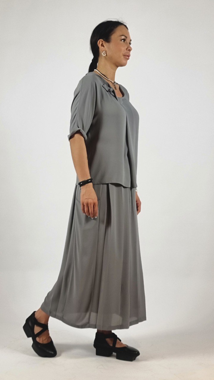- Материал и ощущение: внешняя ткань лёгкая, струящаяся, сохраняет форму плиссе; внутренняя подкладка гладкая и приятная к телу.